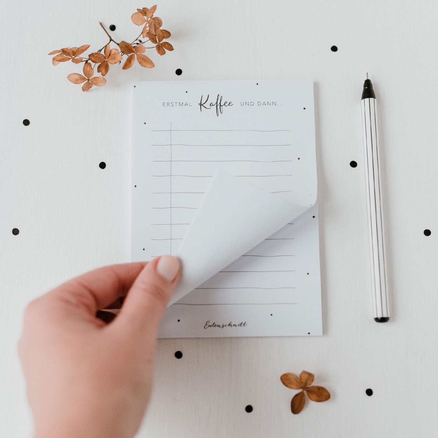 Und wenn man dann noch so einen süßen Block "Erstmal Kaffee und dann... von Eulenschnitt bereit liegen hat, macht das ganze doch gleich noch ein wenig mehr Spaß.