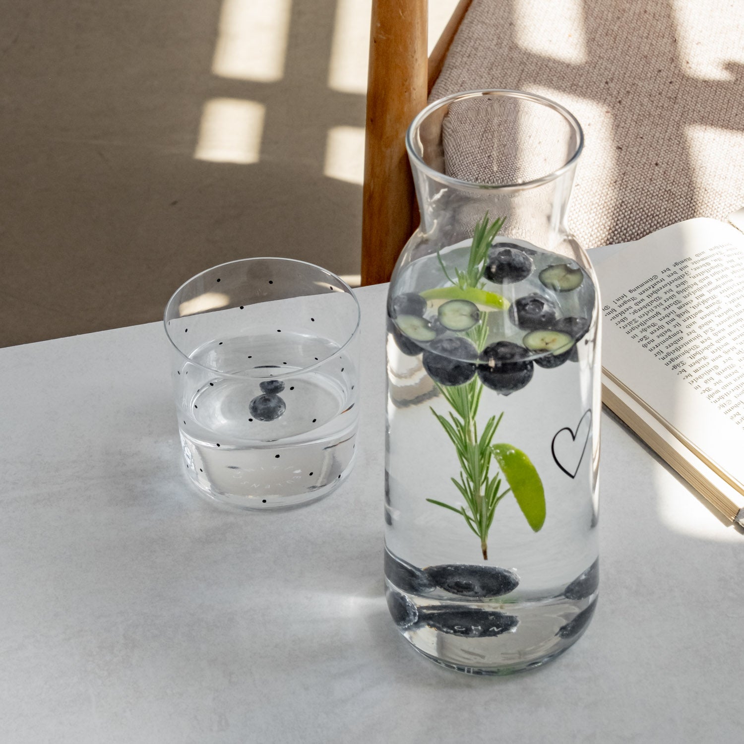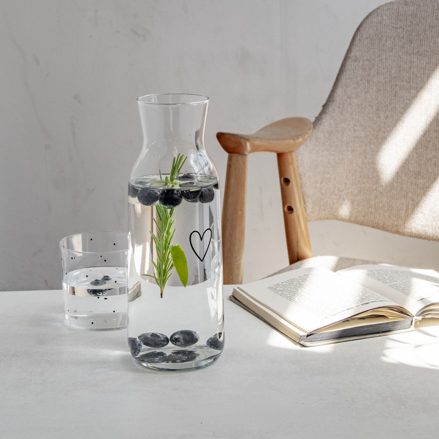 Entdecke die wundervolle Karaffe Herz. So schmeckt das Wasser, die selbstgemachte Zintronen-Limonade, der frisch gepresste Saft, der Wein oder vieles mehr doch gleich noch viel besser. Diese Karaffe ziert ein wundervolles Herz und macht den Wasserkrug zu einem ganz besonderer Hingucker an deinem gedeckten Tisch.