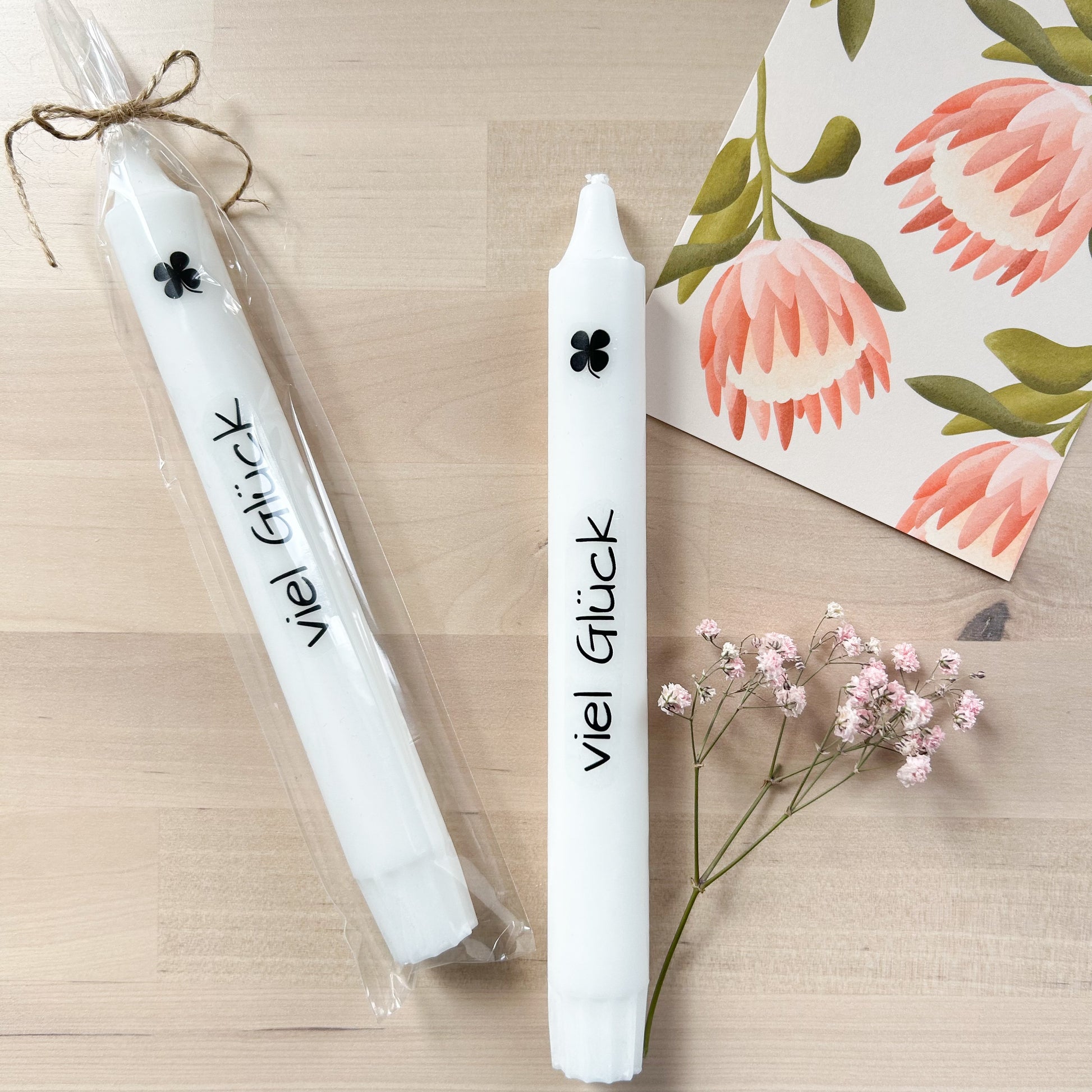 Farbe: weiß mit dem Schriftzug "Viel Glück"