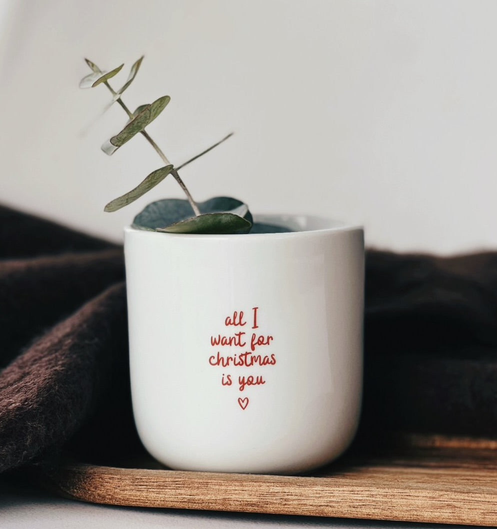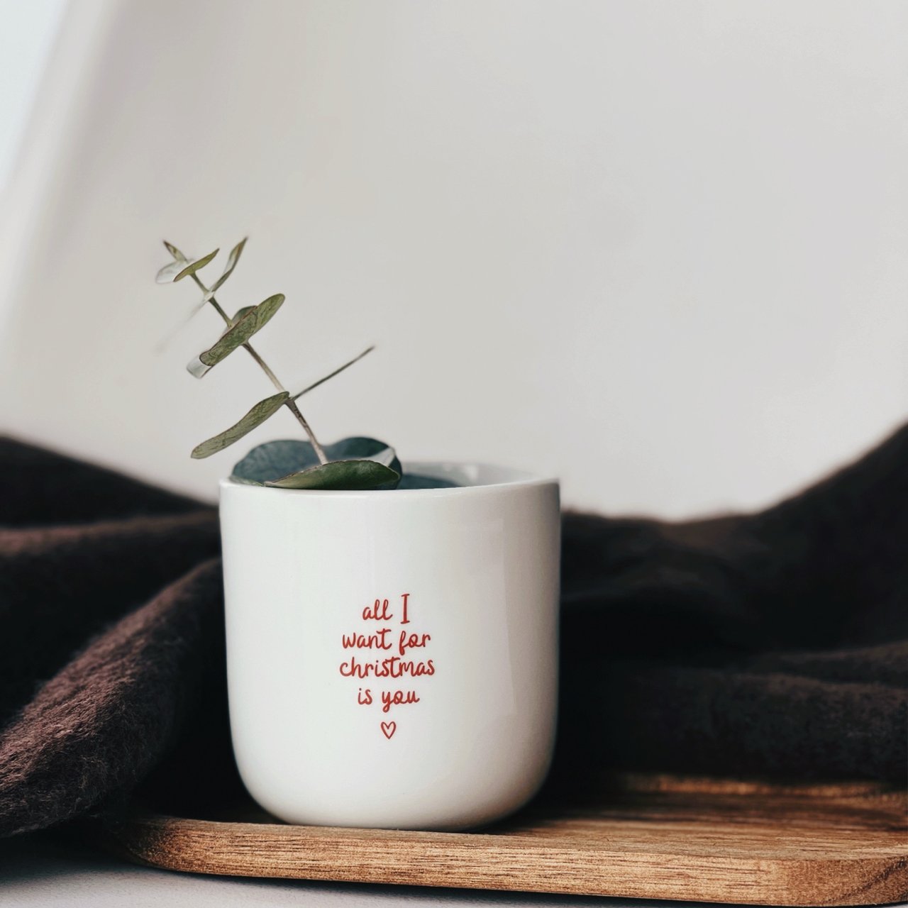 Weihnachtlicher Porzellanbecher „all I want for Christmas is you“ – Stilvoll, hochwertig & voller Festtagszauber.