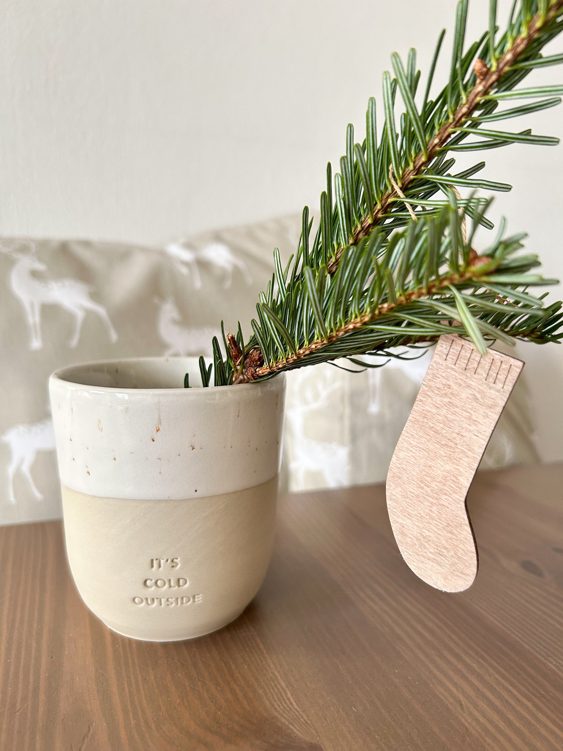 Der Becher "it's cold outside" ist jetzt einfach der perfekte Begleiter für Herbst und Winter. Mache es dir mit einem warmen Getränk gemütlich in deinem Zuhause.