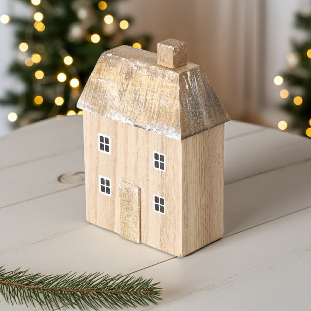 Bringe mit diesen handgefertigten Deko-Häuschen aus naturbelassenem und handbemalten Holz den nordischen Flair in deine Winterdekoration.