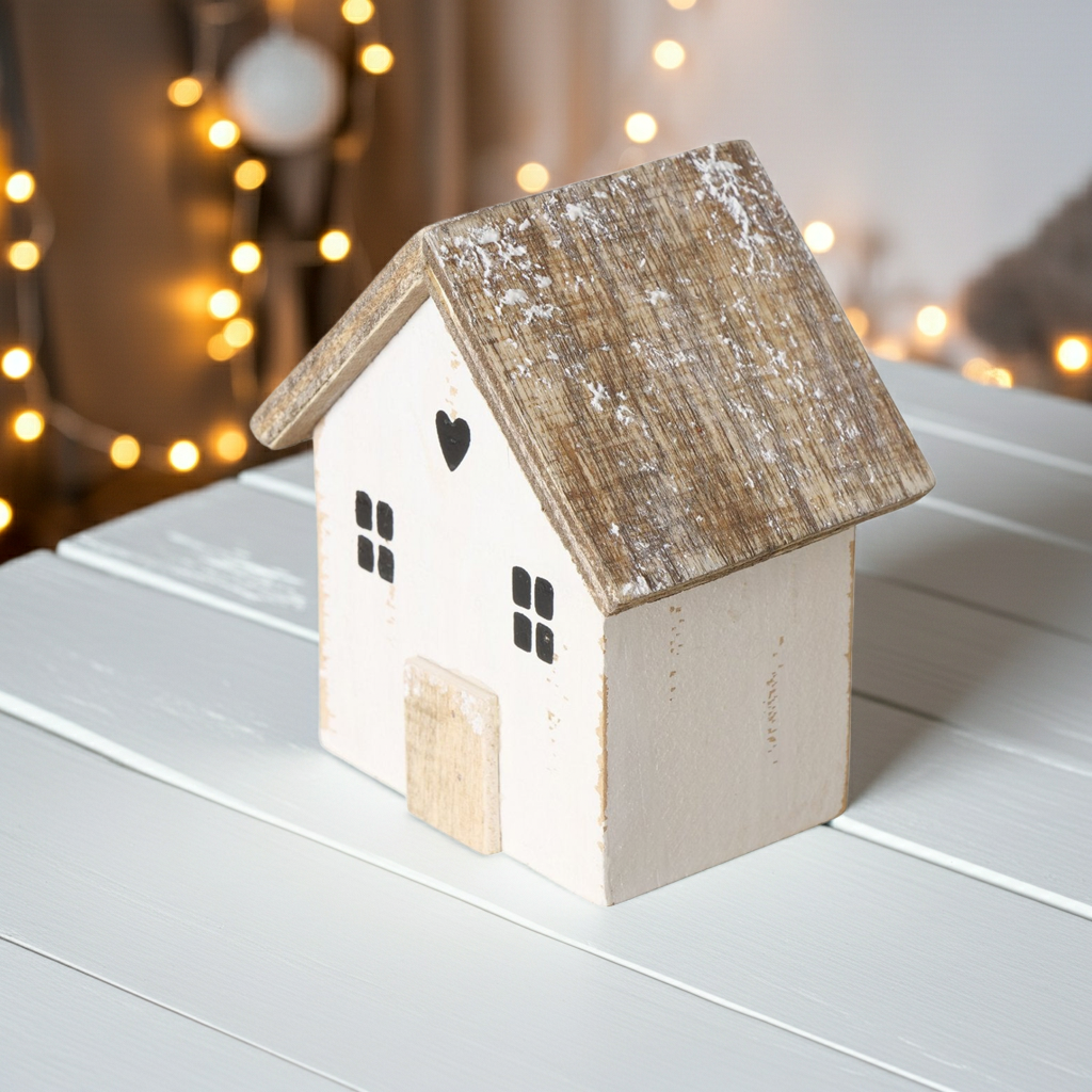 Bringe mit diesen handgefertigten Deko-Häuschen aus naturbelassener und handbemalten Holz den nordischen Flair in deine Winterdekoration.