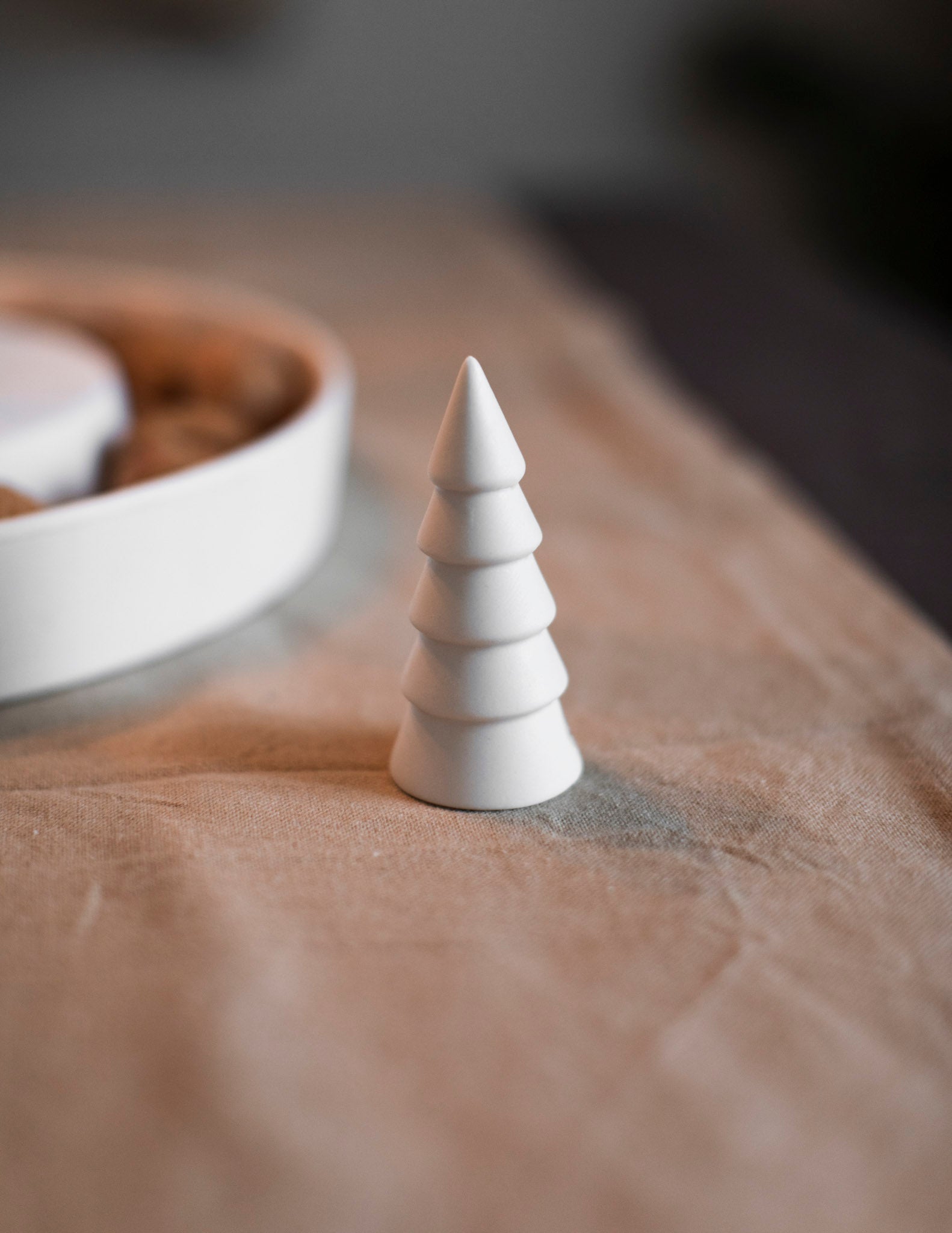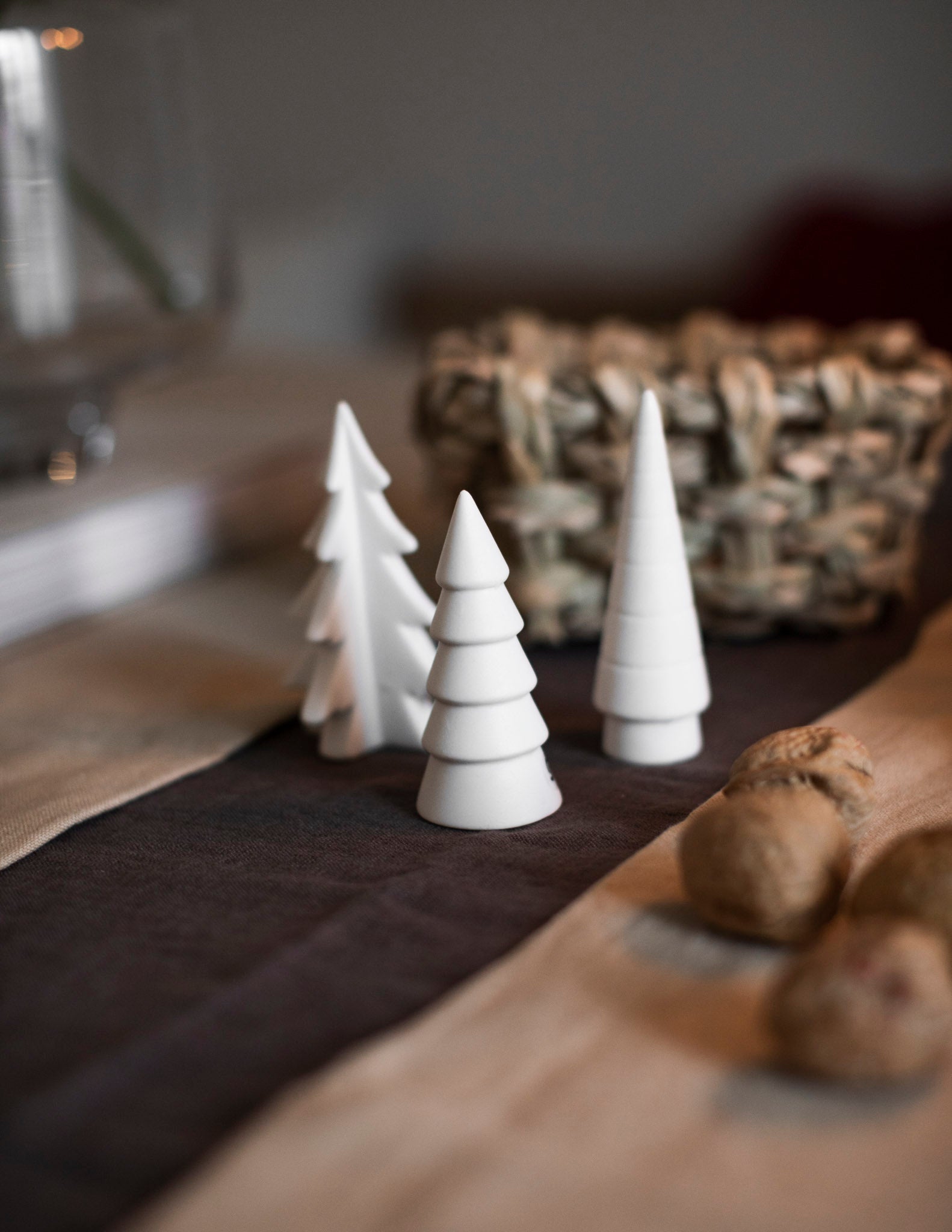 Kleines Tannenbäumchen aus matter Keramik, lässt sich wunderschön auf einem Dekotablett mit weiteren weihnachtlichen Deko-Elementen, auch von Storefactory dekorieren.