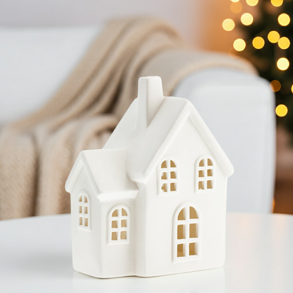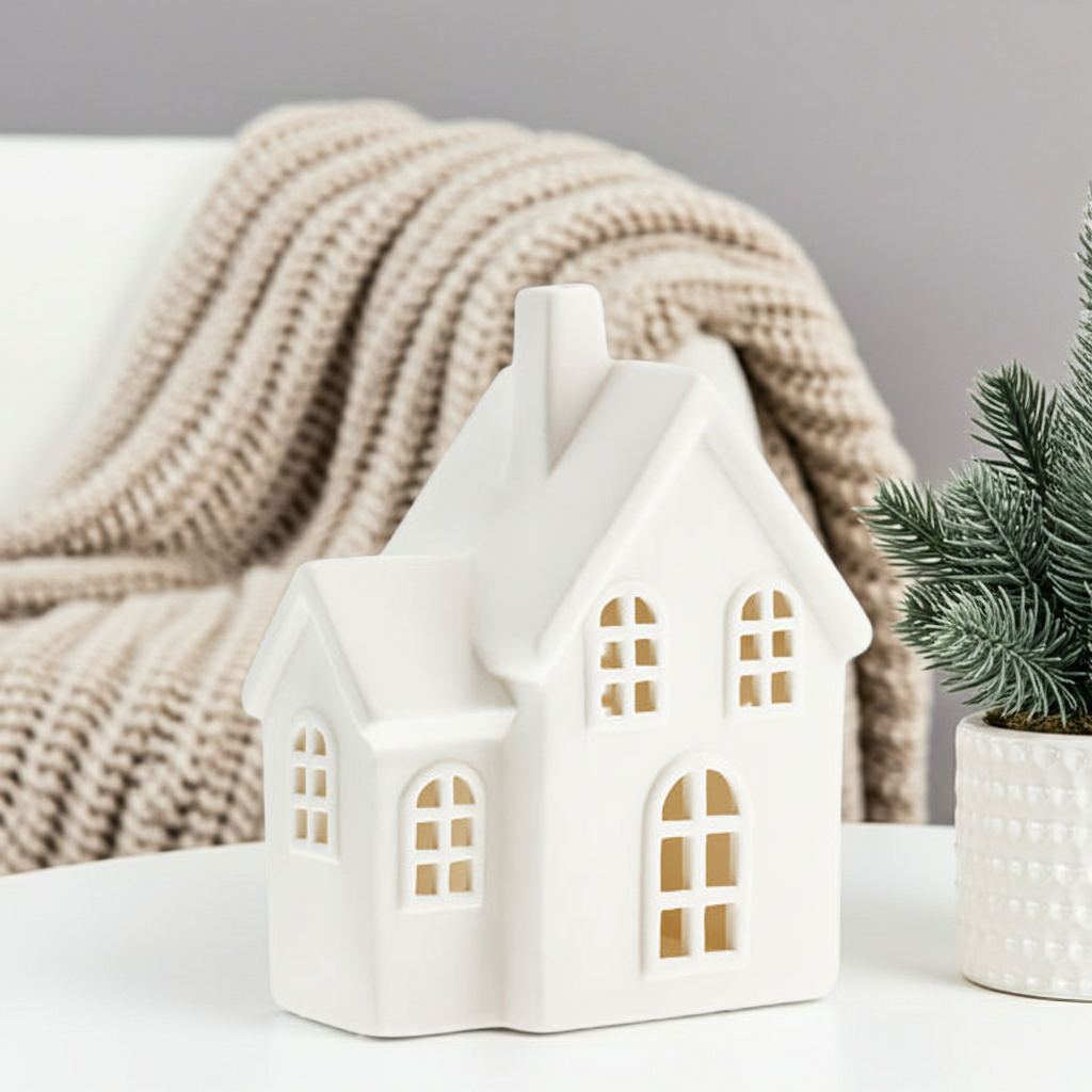 Zauberhaftes Häuschen aus Keramik. Das Häuschen schafft eine sehr gemütliche Stimmung und ist ein absoluter Blickfang in deiner Deko.