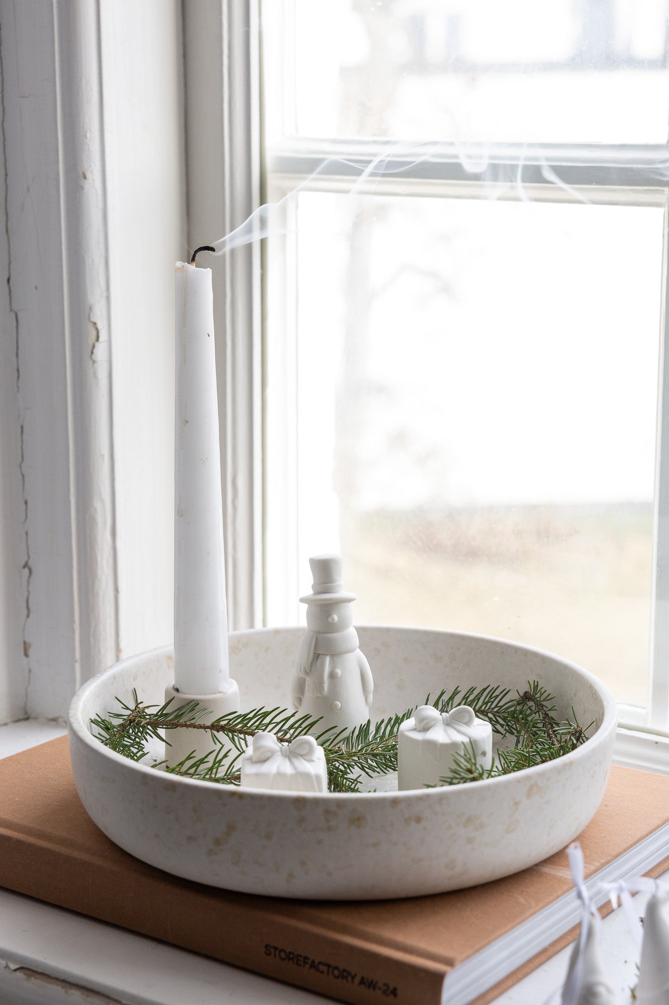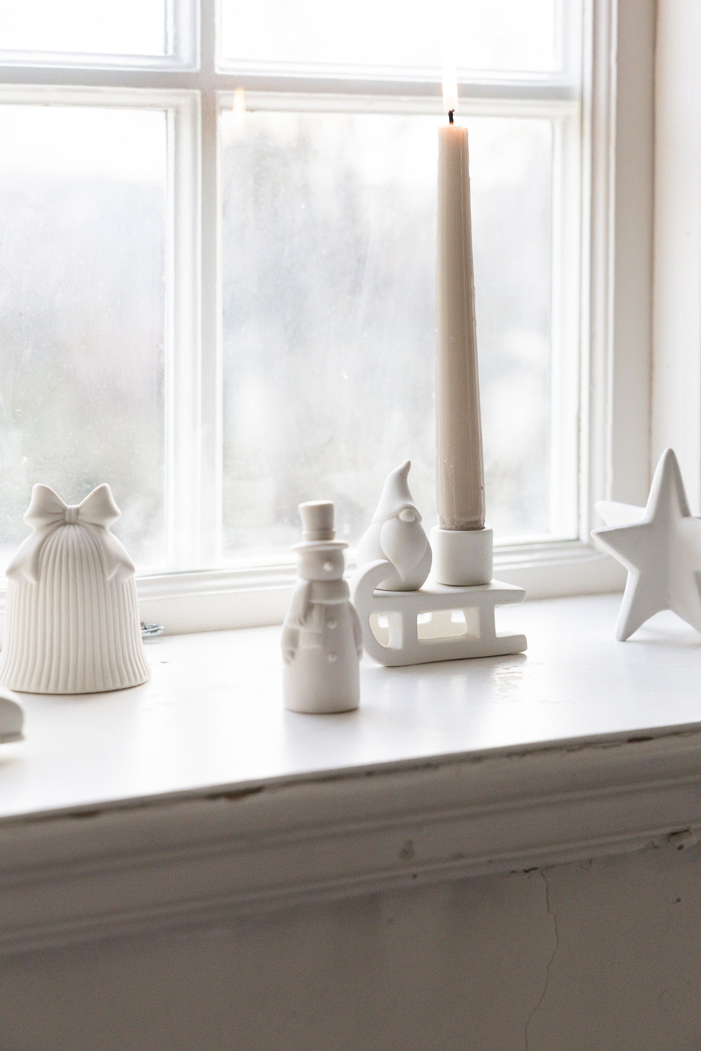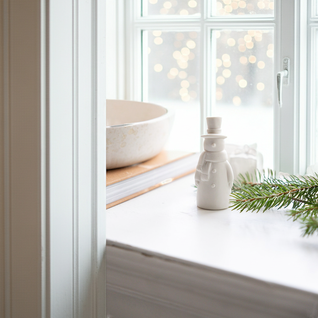 Weißer Schneemann aus Keramik – stilvolle Weihnachtsdeko