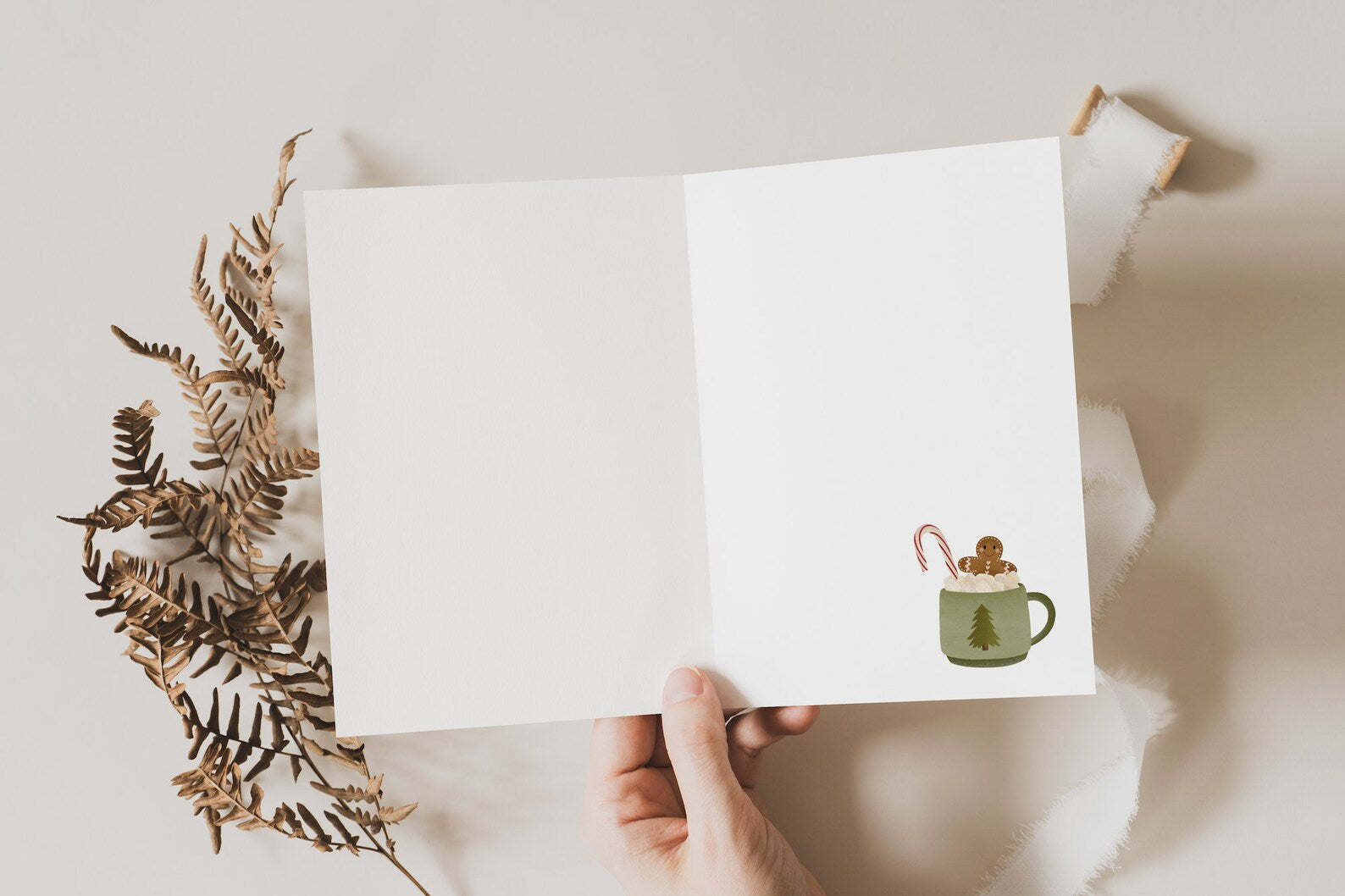 Eine unglaubliche süße Weihnachtskarte mit einem bezauberndem Design, nämlich mit einem Lebkuchenmännchen badend in einer heißen Schokolade - einfach bezaubernd. Wer würde sich nicht über so eine hübsche Weihnachtskarte freuen.